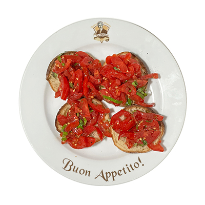 4 “montanare” clásicas con salsa de tomate, grana padano y albahaca