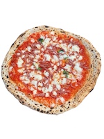 Mozzarella “fior di latte de Agerola”, basilico, pecorino romano, prosciutto cotto, funghi e olio di semi di soia