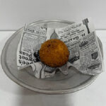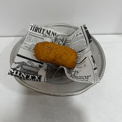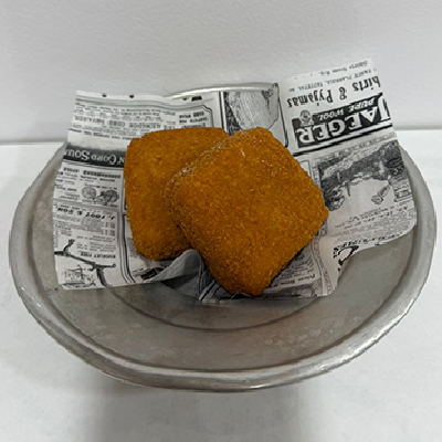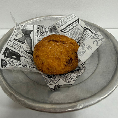 Fried folded pizza filled with tomato, provola, ricotta, basil, pecorino PDO, “cicoli”, salami and soy oil