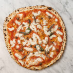 Tomàquet, mozzarella “fior di latte de Agerola” doble, alfàbrega, formatge pecorino DOP i oli de llavors.